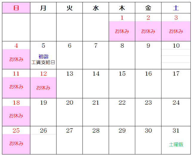年始は5日月曜日スタートです。